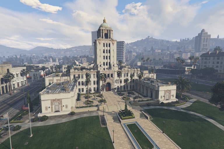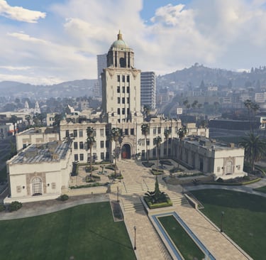 Los Santos City Hall - State Department The City hall houses the main constituents of the State Government, Mayors Office, Voting, Licensing, Document Requests, DOJ and the Civilian Jobs Center options are available through City Hall.