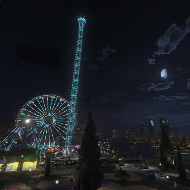 Amusement Park with Rides and Vendors